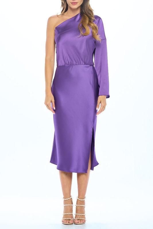 Stretch Satin One Shoulder Dress