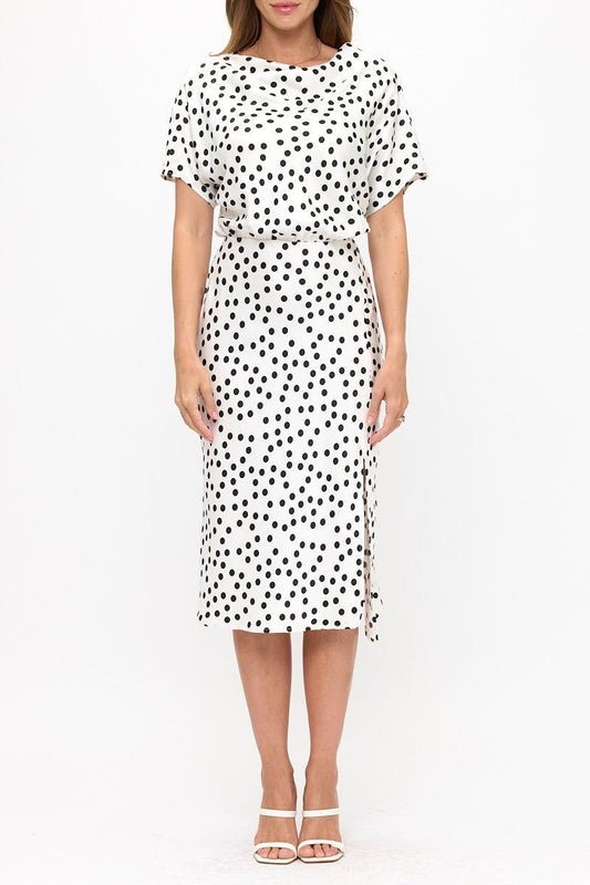 Polka Dot V neck Jersey Wrap Dress with Tie