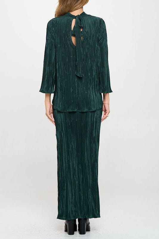 Plisse Solid Round neck Top with 3/4 Sleeve